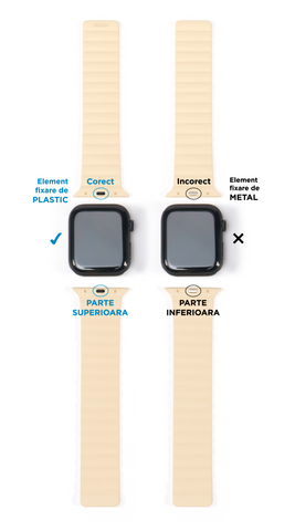 Pentru a evita o eventuala confuzie, daca intoarceti cureaua elementul de blocare al mecanismului va fi metalic de culoare argintie.