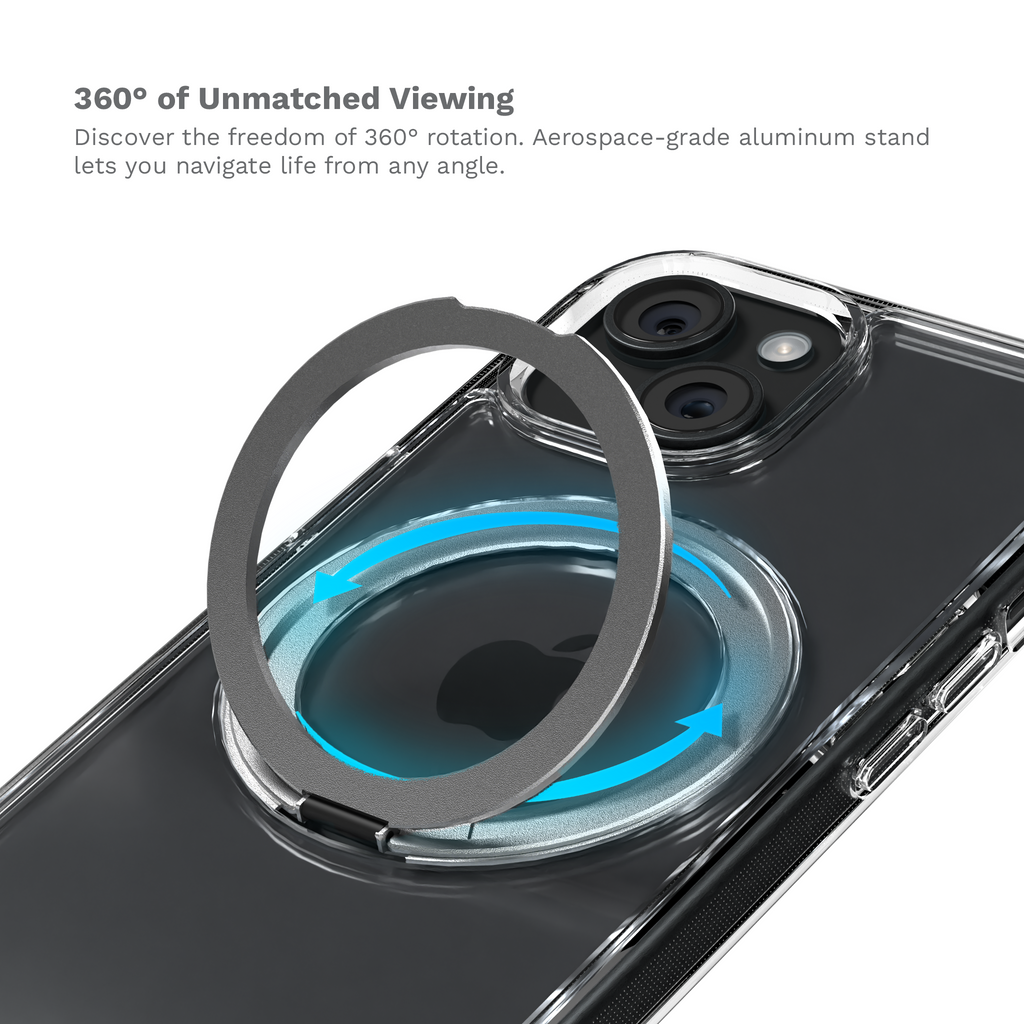 iPhone 15 Plus Tasche, Clip-On Crystal MagSafe kompatibel, mit 360 Grad drehbarem Ständer, Transparent
